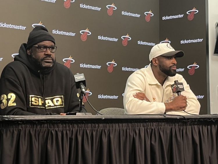 恍如隔世!奥尼尔和韦德出席热火夺冠20周年纪念活动新闻发布会